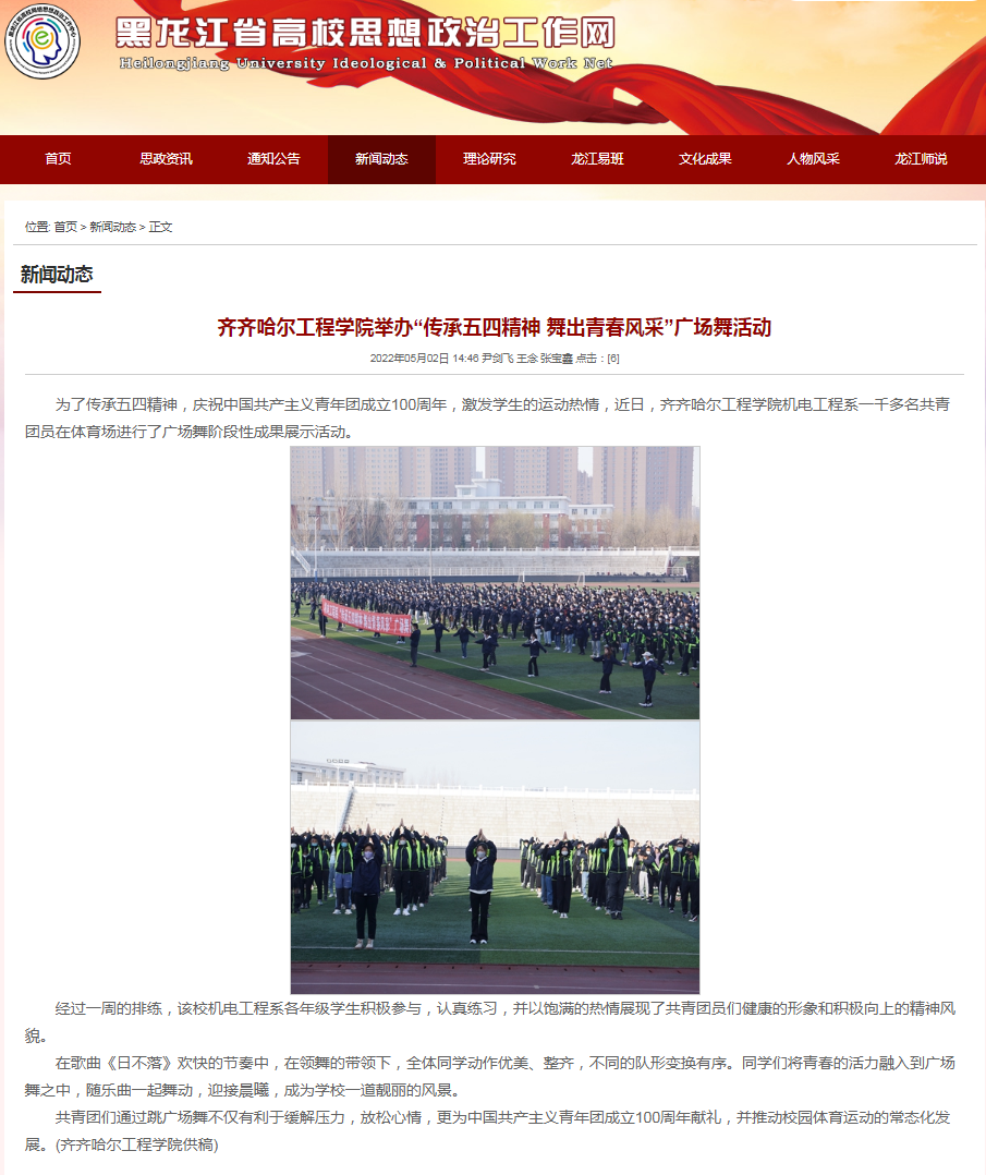 黑龙江省高校思想政治工作网:乐投app官方在线入口举办“传承五四精神 舞出青春风采”广场舞活动