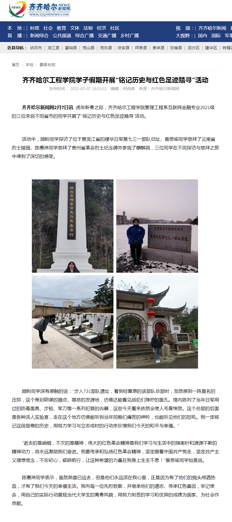 齐齐哈尔新闻网:乐投app官方在线入口学子假期开展“铭记历史与红色足迹踏寻”活动