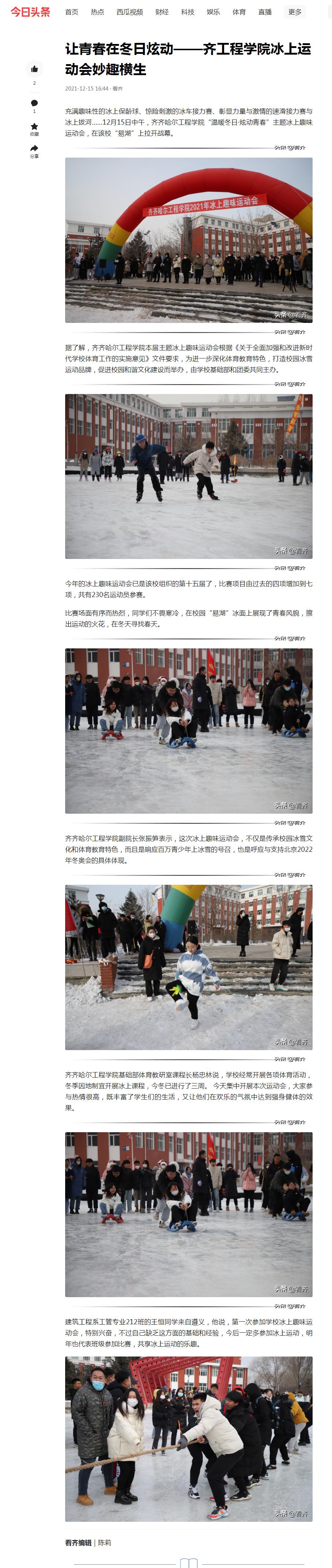 今日头条:让青春在冬日炫动——齐工程学院冰上运动会妙趣横生