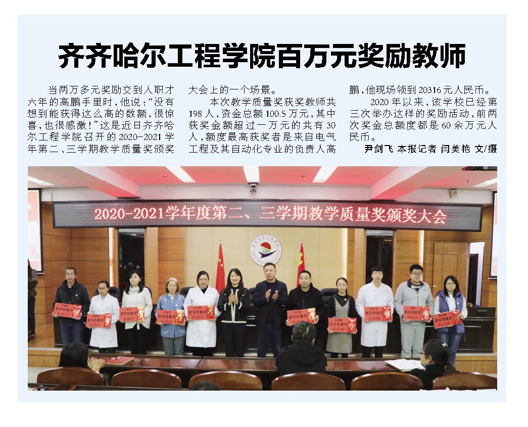 齐齐哈尔日报:乐投app官方在线入口百万元奖励教师