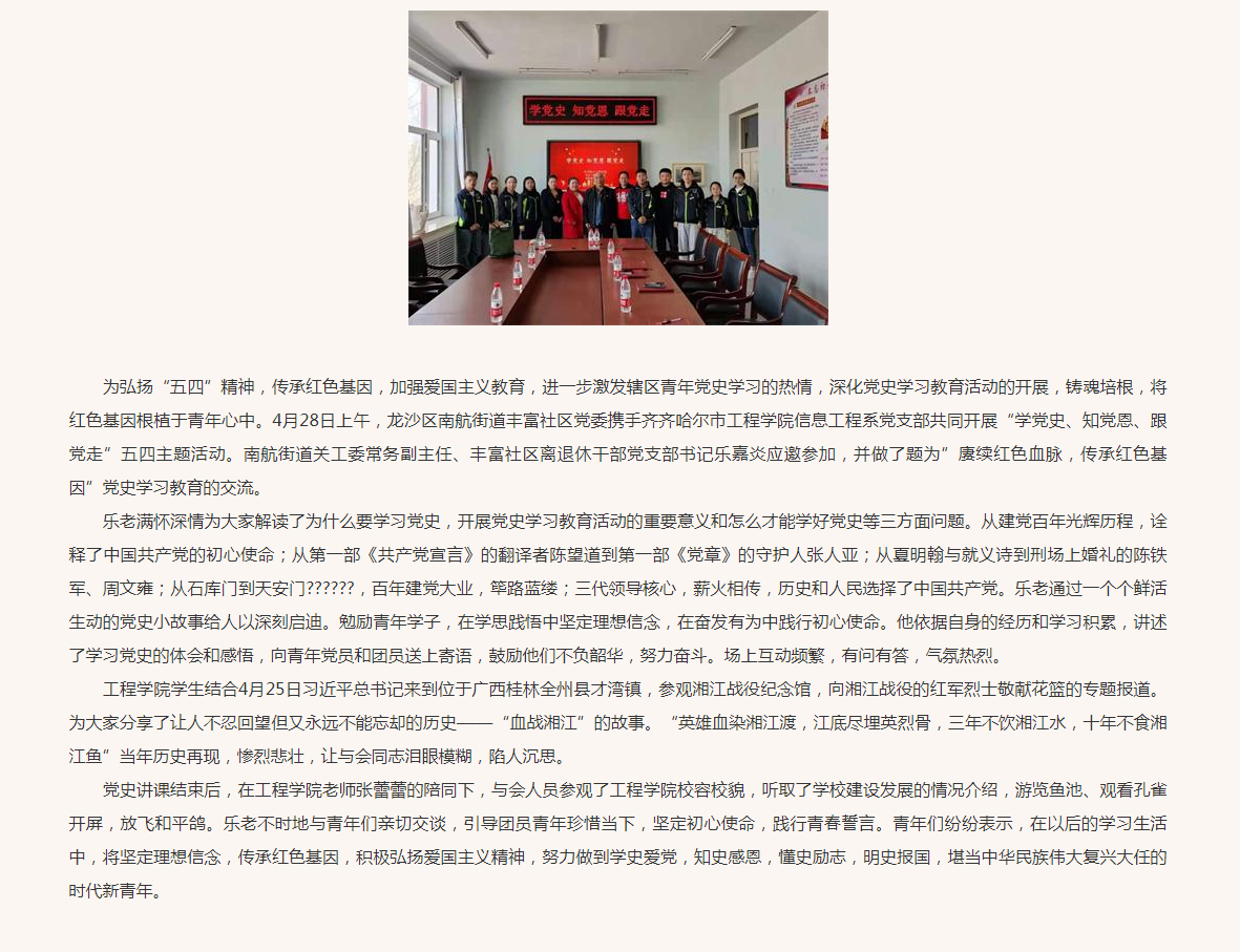 齐齐哈尔市人民政府网报道学校信息工程系党支部开展党史学习教育活动信息
