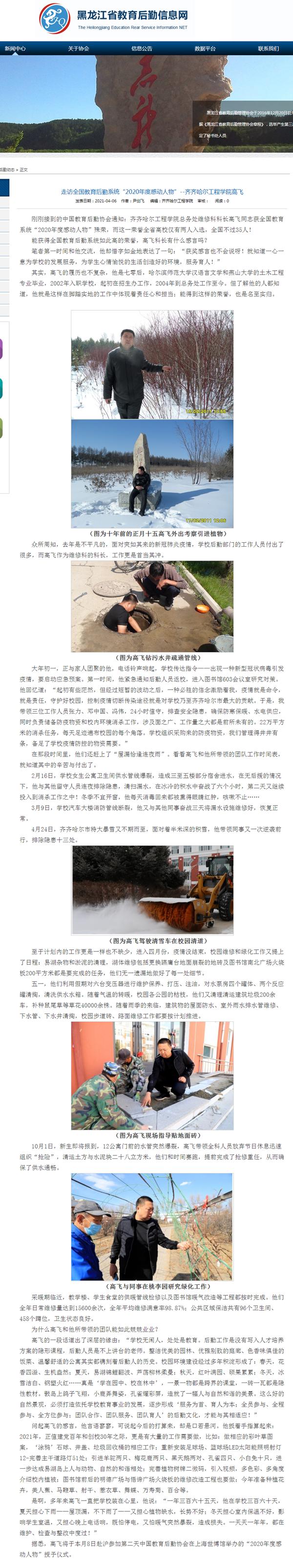 黑龙江省教育后勤信息网:走访全国教育后勤系统“2020年度感动人物”--乐投app官方在线入口高飞