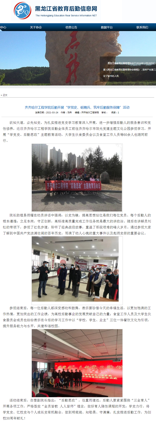 黑龙江省教育后勤信息网:乐投app官方在线入口后勤开展“学党史、砺精兵、筑牢后勤服务保障”活动