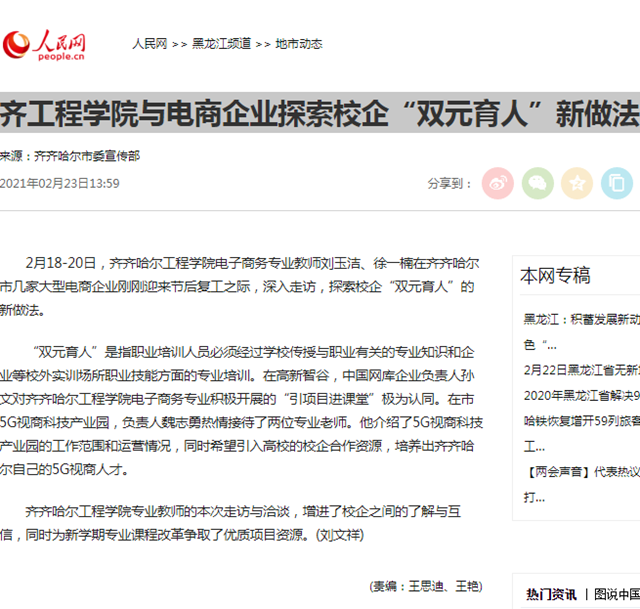 人民网:齐工程学院与电商企业探索校企“双元育人”新做法