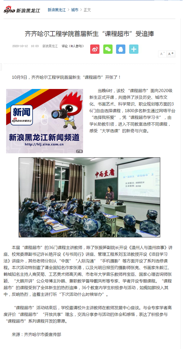 新浪黑龙江:乐投app官方在线入口首届新生“课程超市”受追捧
