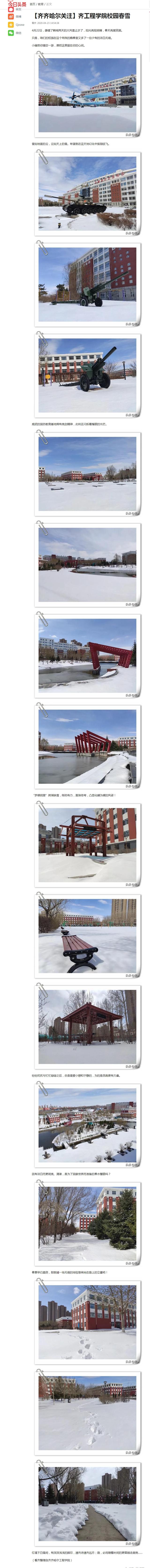 今日头条《齐齐哈尔关注》:齐工程学院校园春雪