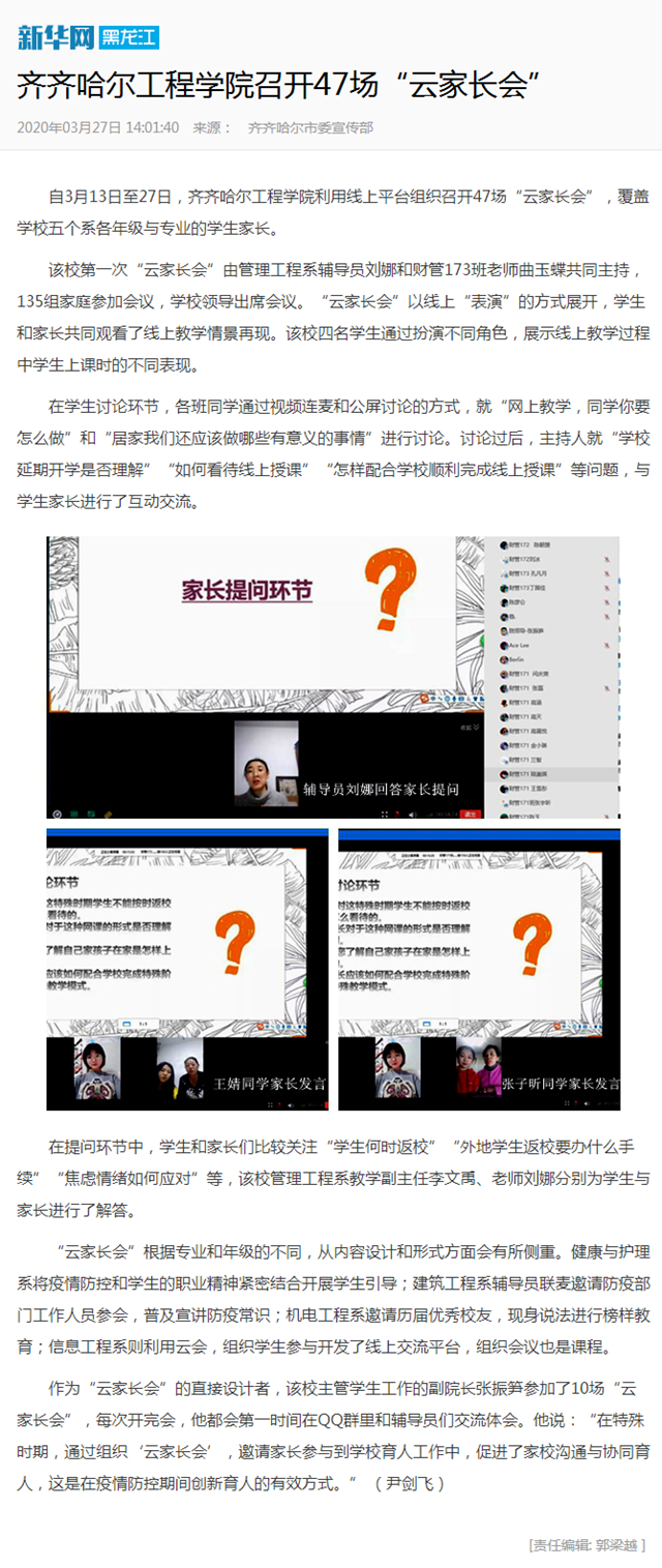 新华网:乐投app官方在线入口召开47场“云家长会”