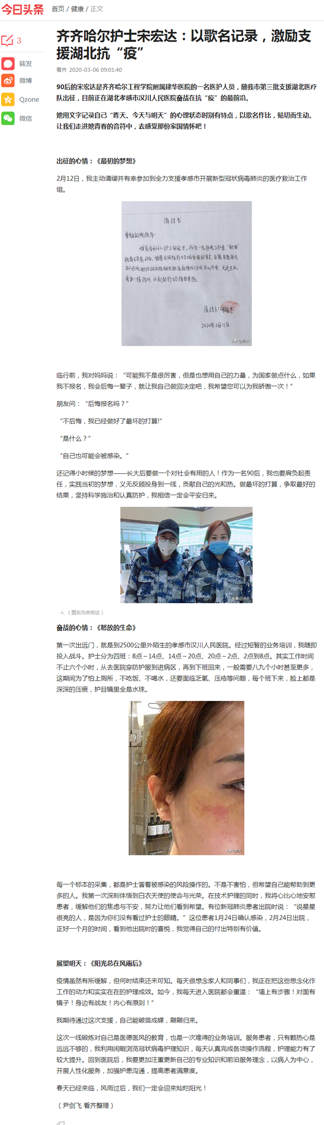 今日头条:学校附属建华医院护士宋宏达:以歌名记录、激励支援湖北抗“疫”