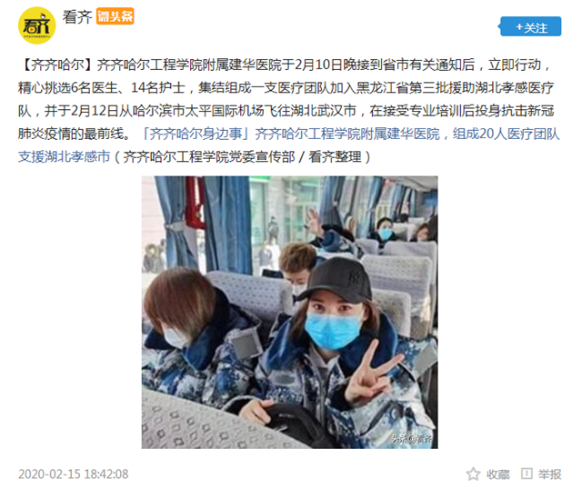 看齐微头条:乐投app官方在线入口附属建华医院组成20人医疗团队支援湖北孝感市