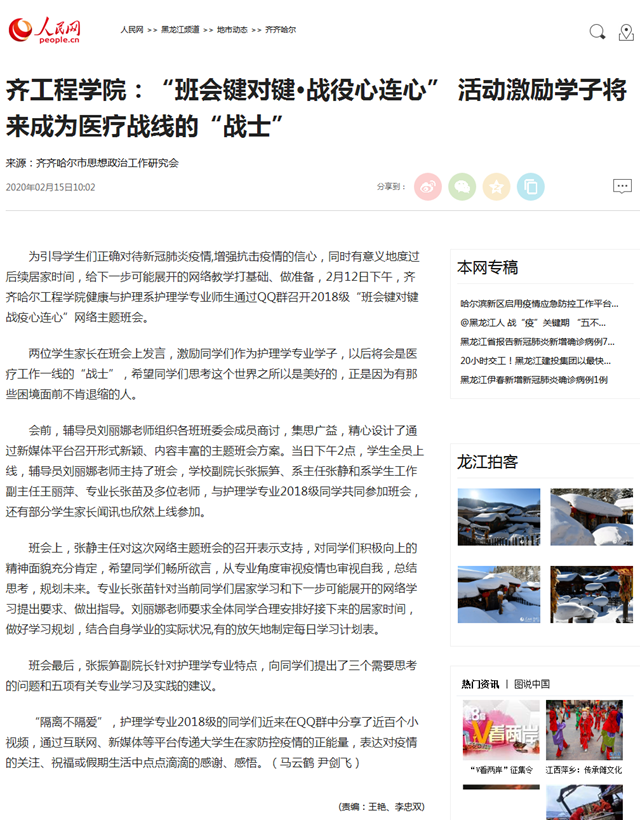 人民网:齐工程学院:“班会键对键·战役心连心” 活动激励学子将来成为医疗战线的“战士”
