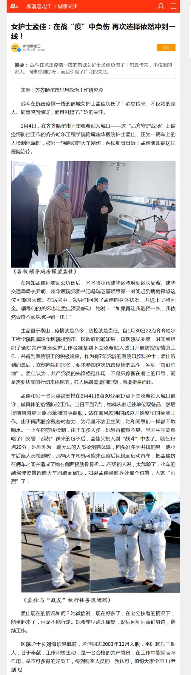 新浪网:女护士孟佳:在战“疫”中负伤 再次选择依然冲到一线!