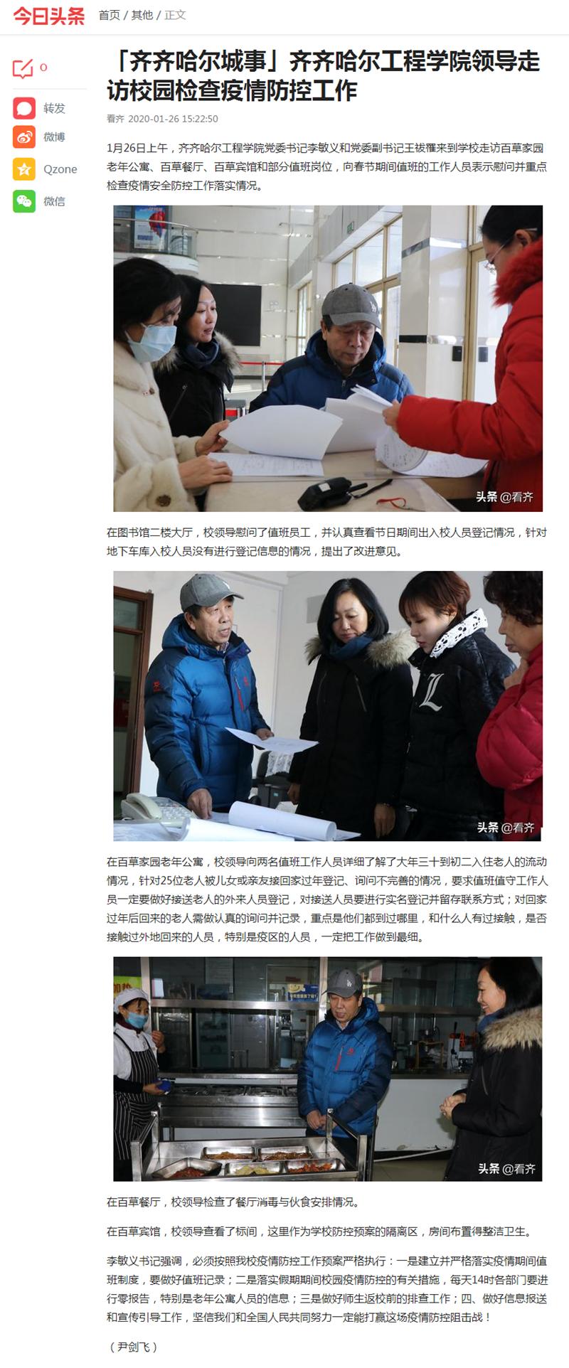 今日头条《齐齐哈尔城事》:乐投app官方在线入口领导走访校园检查疫情防控工作
