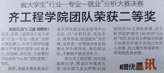 鹤城晚报:省大学生“行业-专业-就业”分析大赛决赛 齐工程学院团队荣获二等奖
