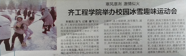 鹤城晚报:齐工程学院举办校园冰雪趣味运动会