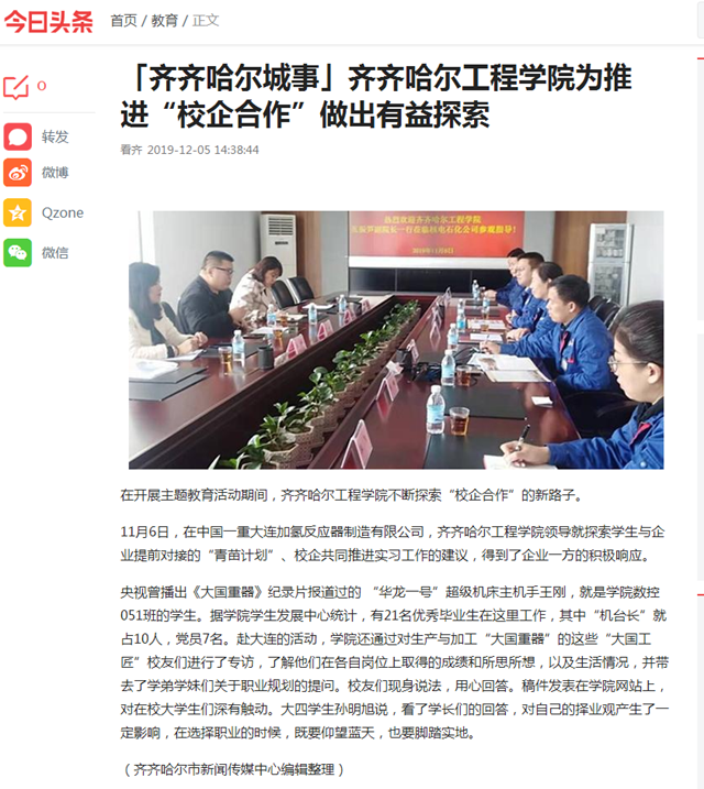 今日头条《齐齐哈尔城事》:乐投app官方在线入口为推进“校企合作”做出有益探索