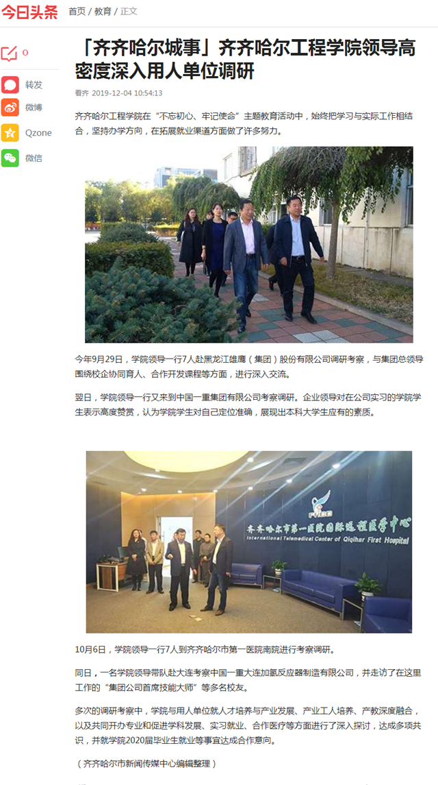 今日头条《齐齐哈尔城事》:乐投app官方在线入口领导高密度深入用人单位调研