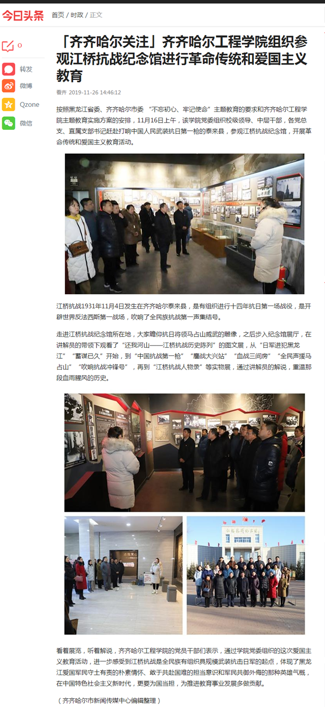今日头条《齐齐哈尔关注》:乐投app官方在线入口组织参观江桥抗战纪念馆进行革命传统和爱国主义教育