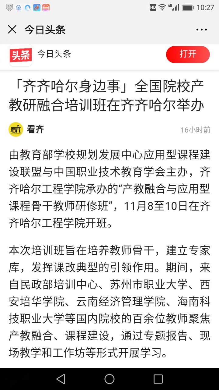 今日头条《齐齐哈尔身边事》:全国院校产教融合培训班在齐齐哈尔举办