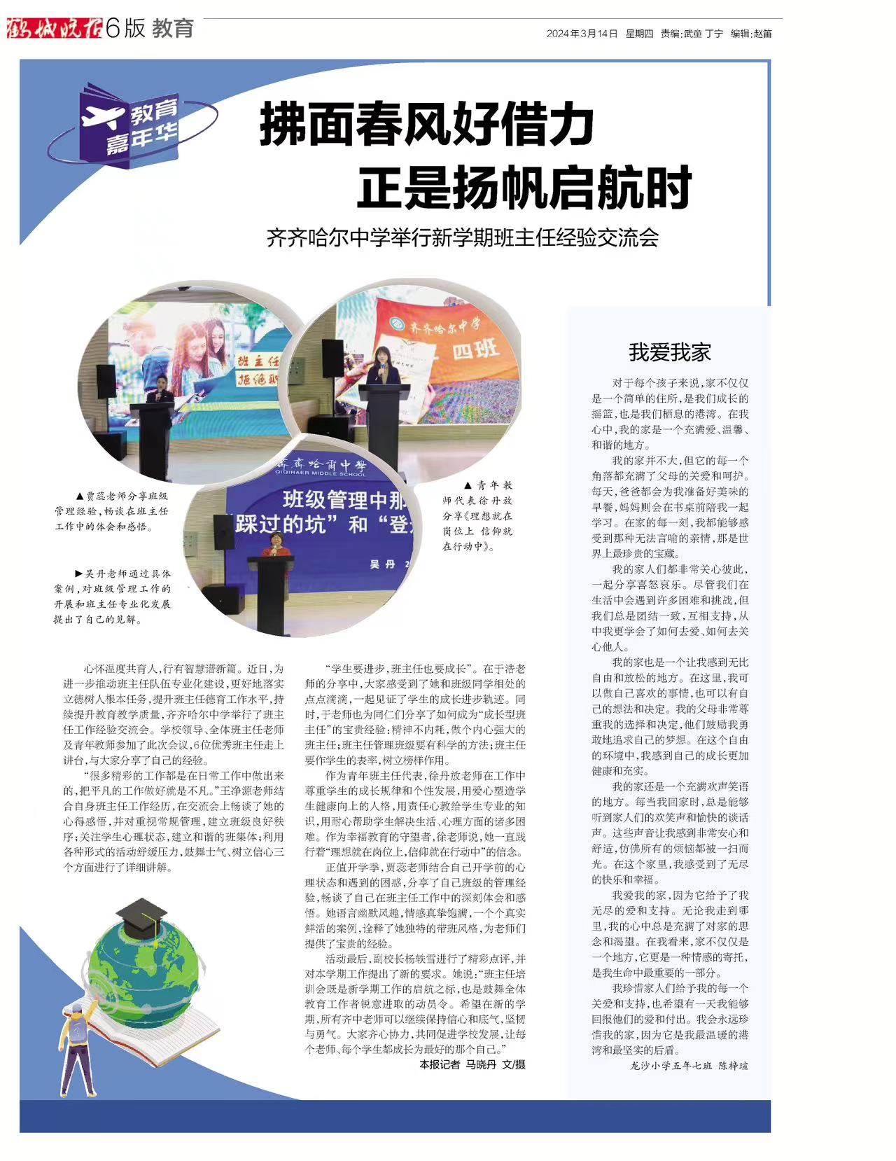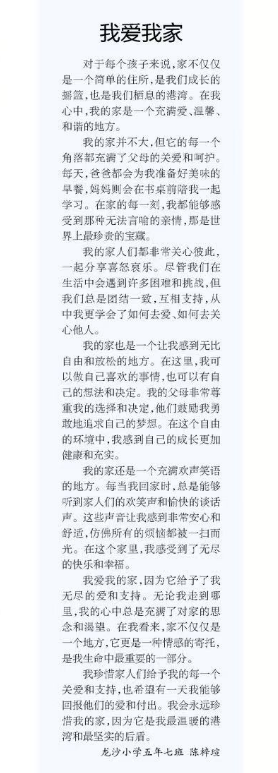 《鹤城晚报》发表子弟学校学生作文《我爱我家》