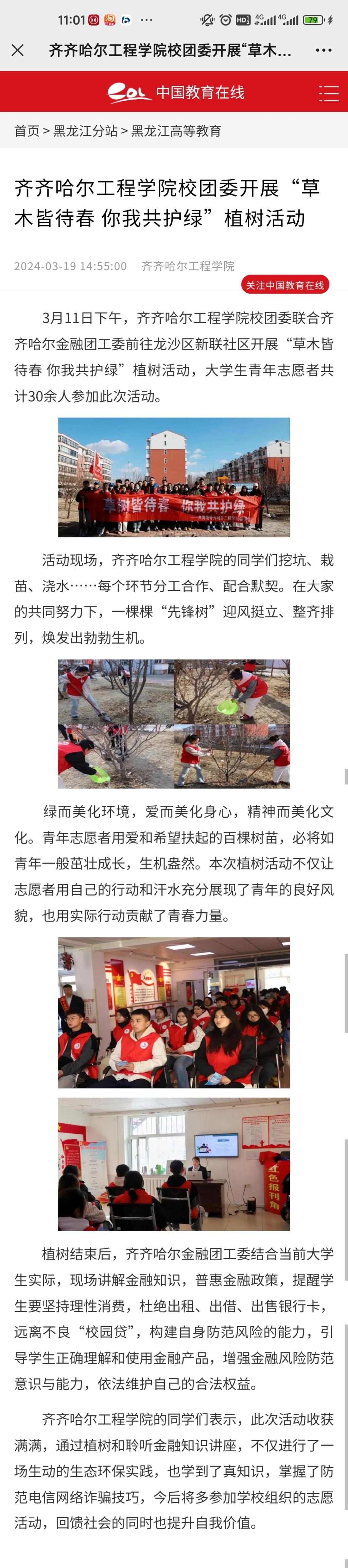 《中国教育在线》报道学校团委开展“草木皆待春 你我共护绿”植树活动