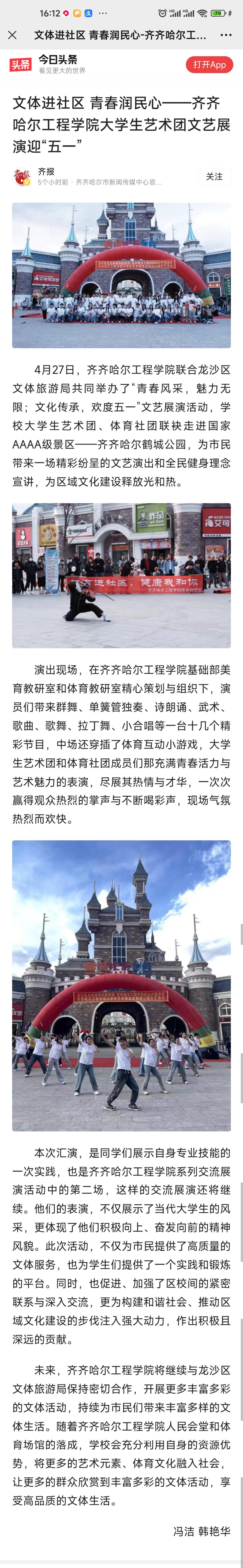 《今日头条》(齐报)报道乐投app官方在线入口 文体进社区 青春润民心