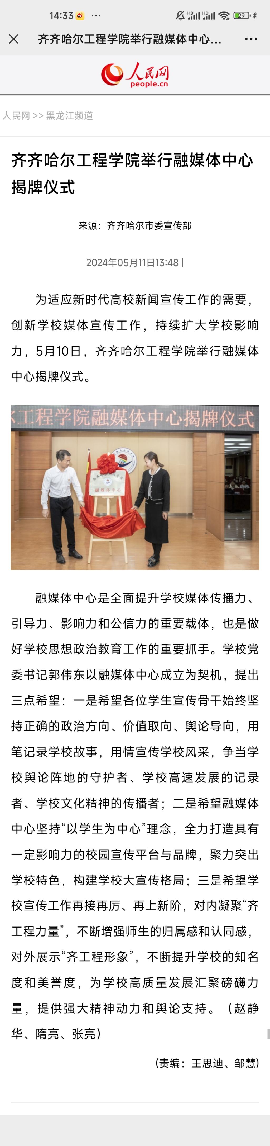 《人民网》报道乐投app官方在线入口举行融媒体中心揭牌仪式