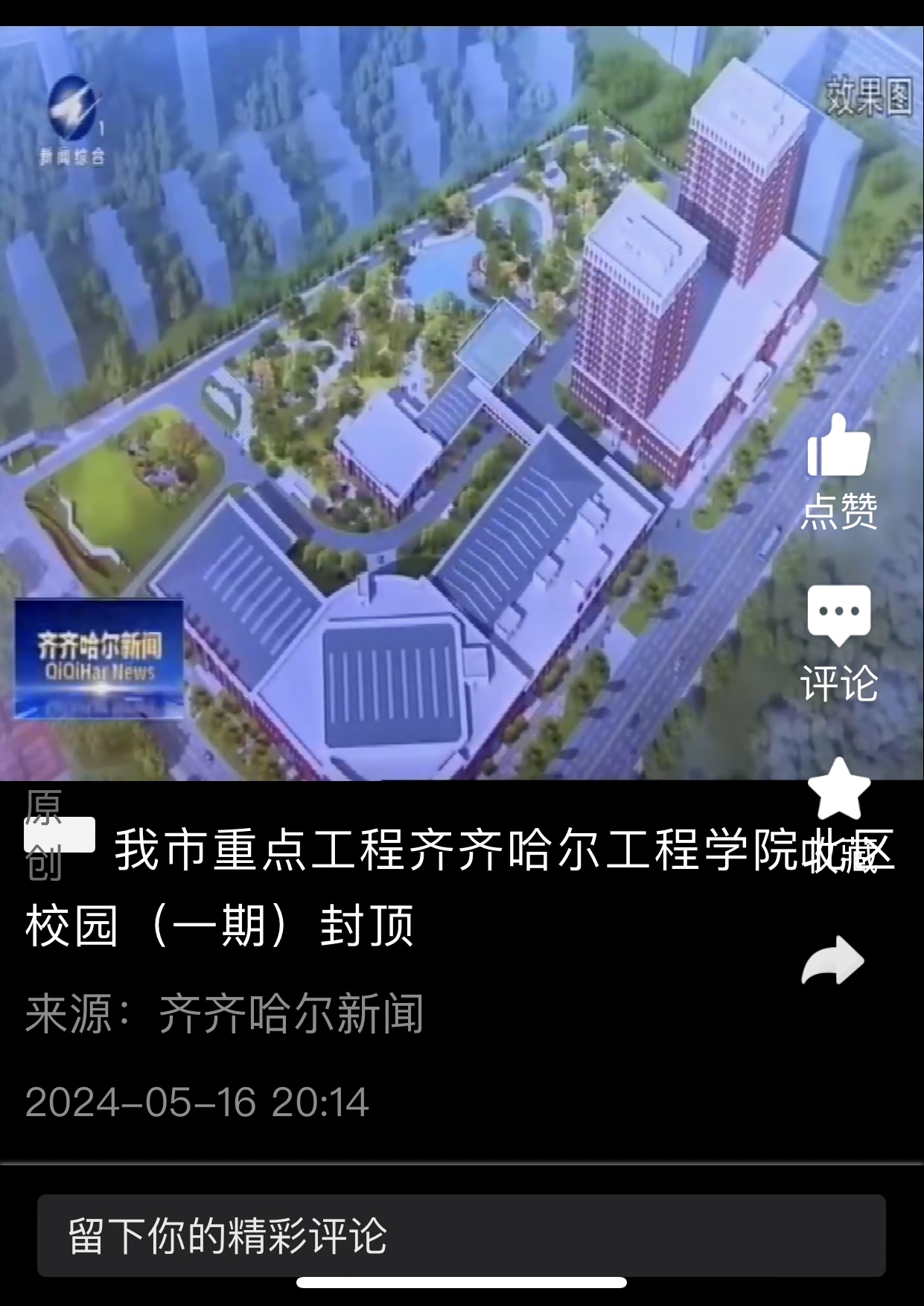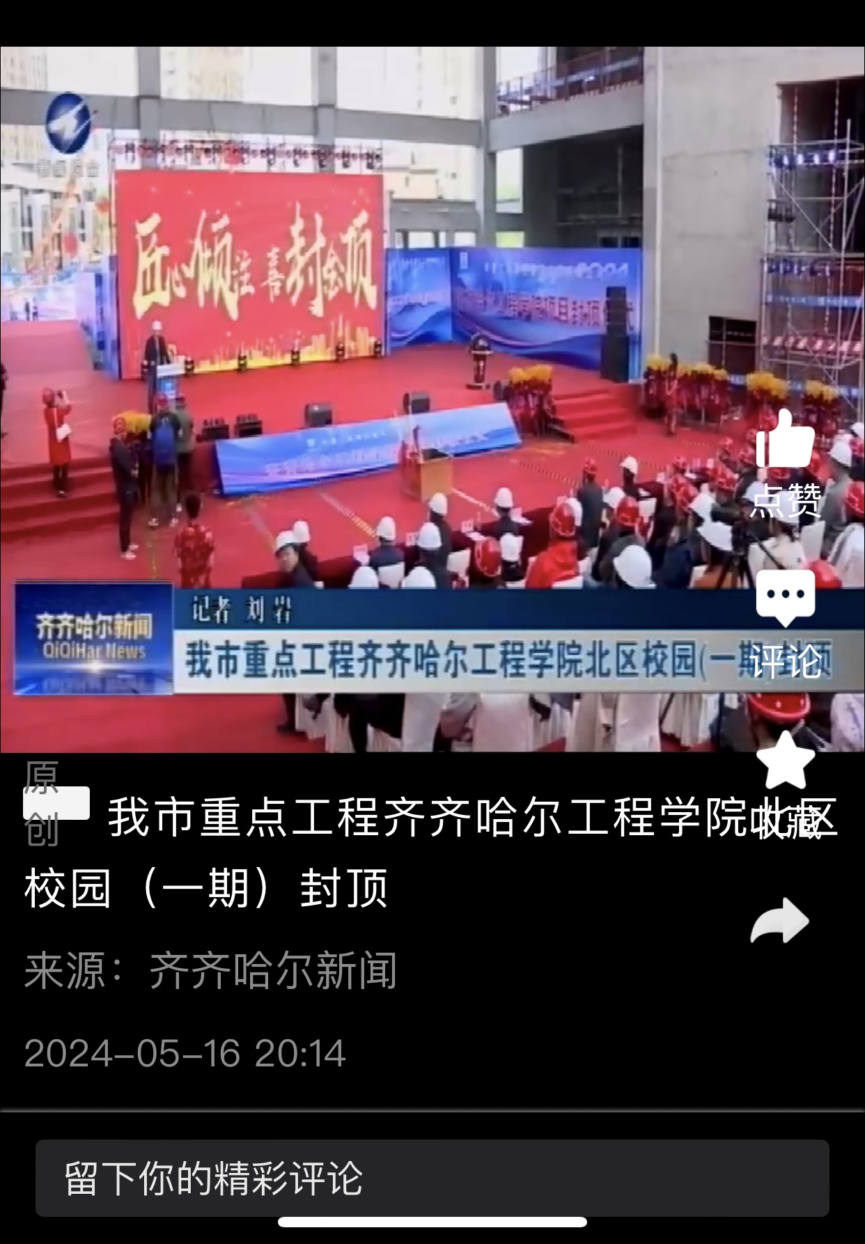 《齐齐哈尔新闻》报道我市重点工程乐投app官方在线入口北区校园(一期)封顶