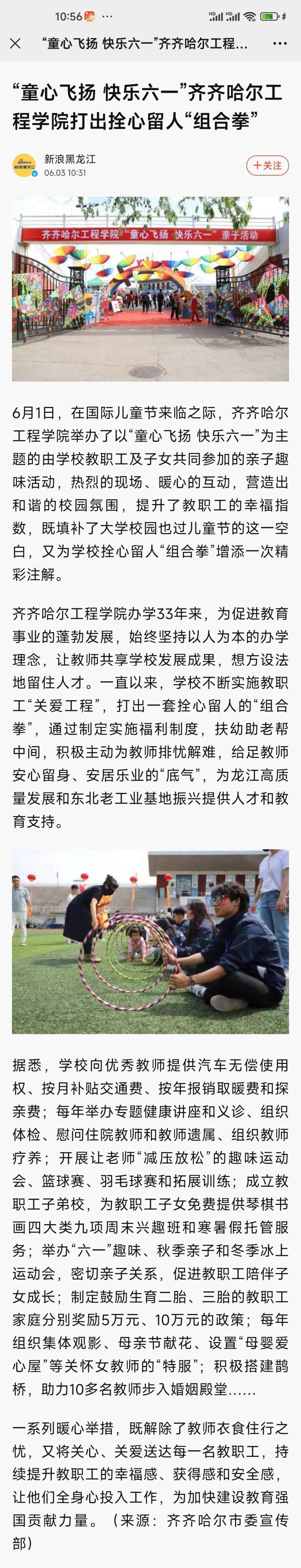 《新浪黑龙江》报道童心飞扬 快乐六一——乐投app官方在线入口打出拴心留人“组合拳”