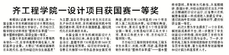 《齐齐哈尔日报》报道齐工程学院一设计项目获国赛一等奖