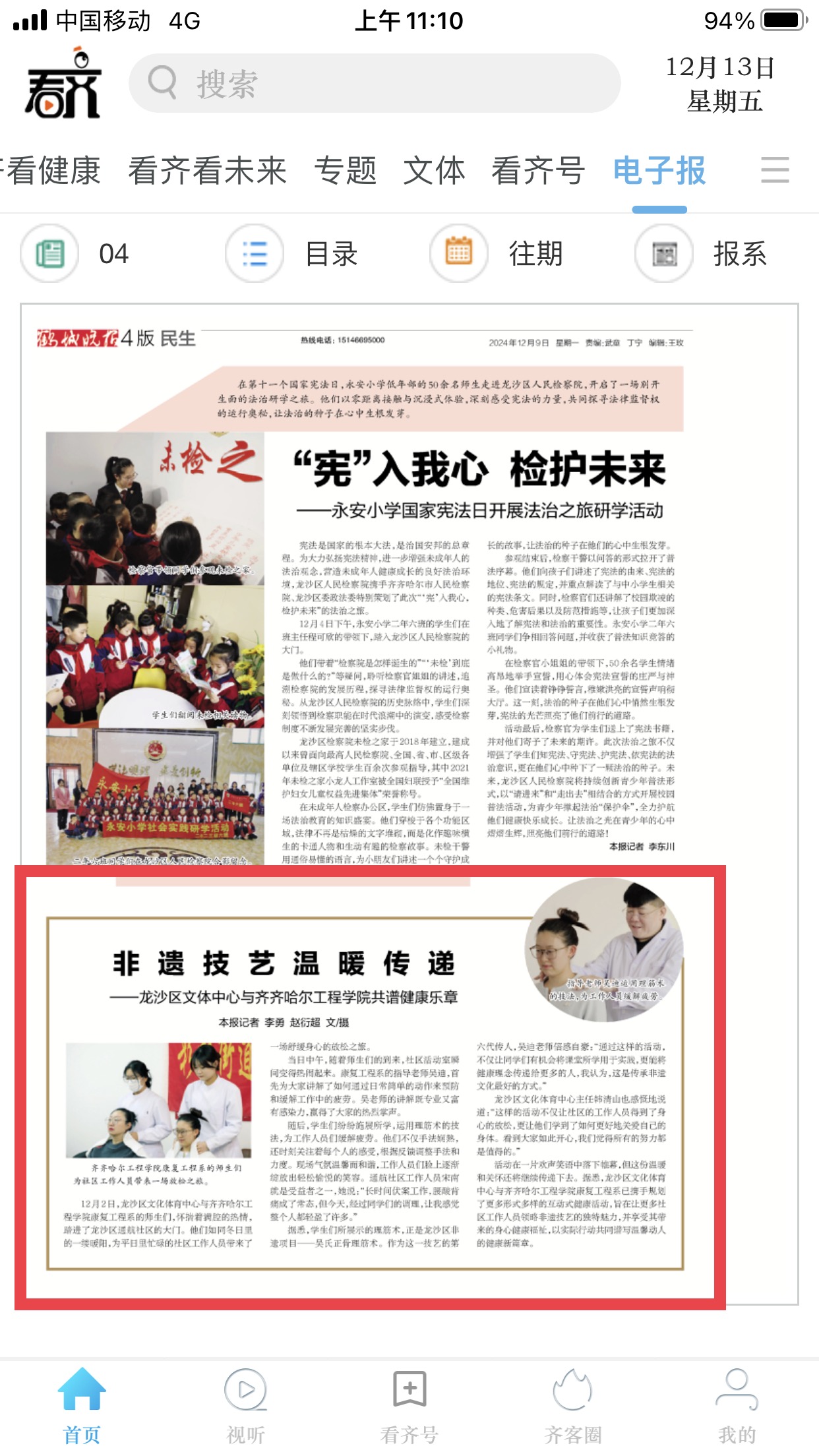 《鹤城晚报》非遗技艺温暖传递——龙沙区文体中心与乐投app官方在线入口共谱健康乐章
