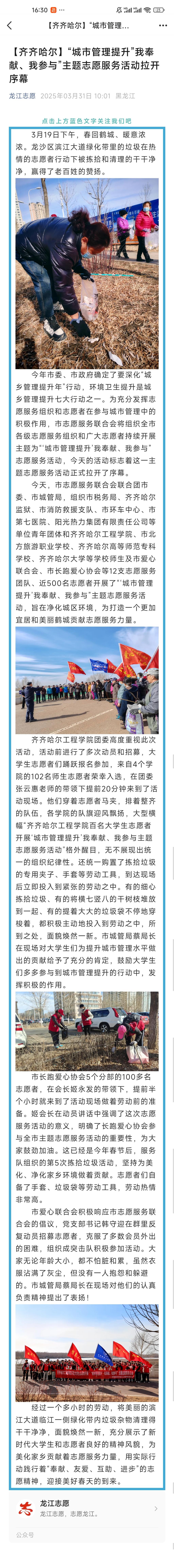 《龙江志愿》“城市管理提升”我奉献、我参与”主题志愿服务活动拉开序幕
