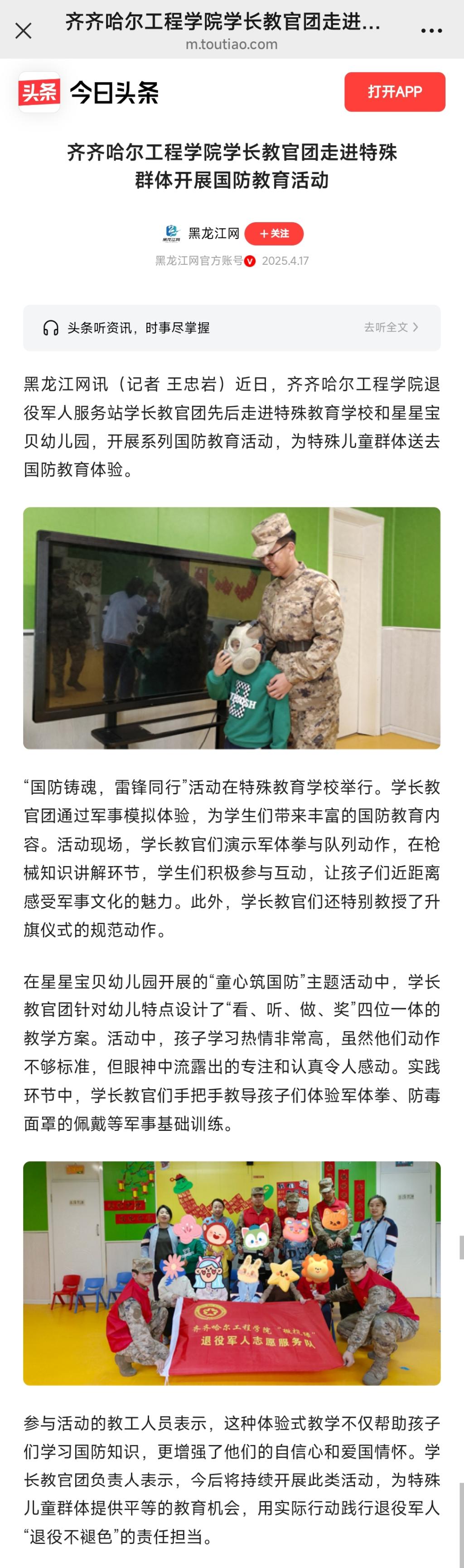 《今日头条》乐投app官方在线入口学长教官团走进特殊群体开展国防教育活动