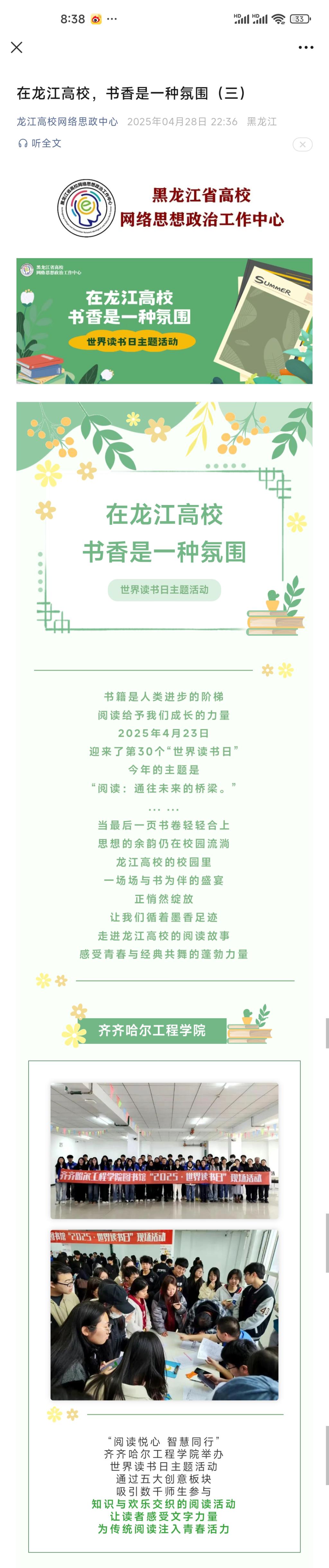 《龙江高校网络思政中心》在龙江高校,书香是一种氛围