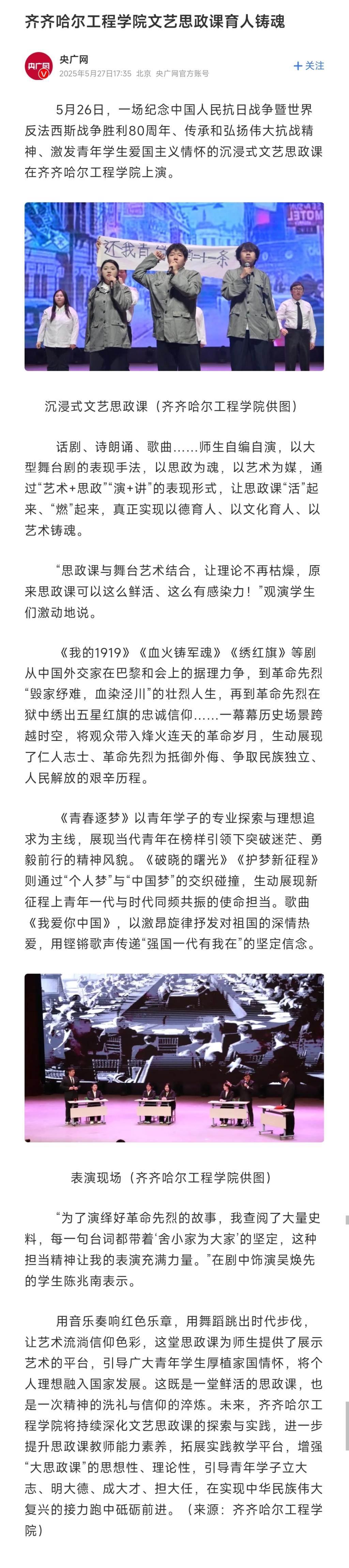 《央广网》乐投app官方在线入口文艺思政课育人铸魂