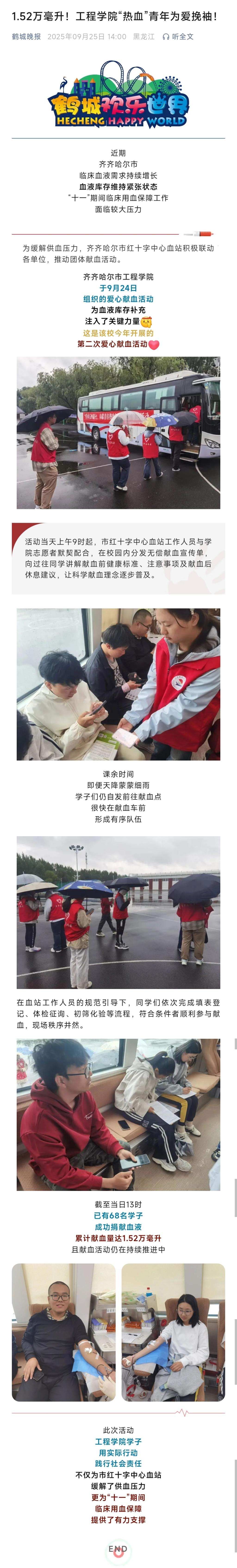 《鹤城晚报》1.52万毫升!工程学院“热血”青年为爱挽袖!