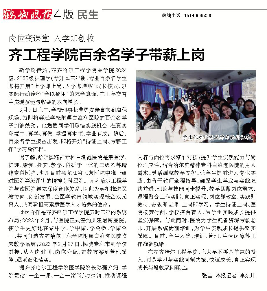《鹤城晚报》岗位变课堂 入学即创收 齐工程学院百余名学子带薪上岗