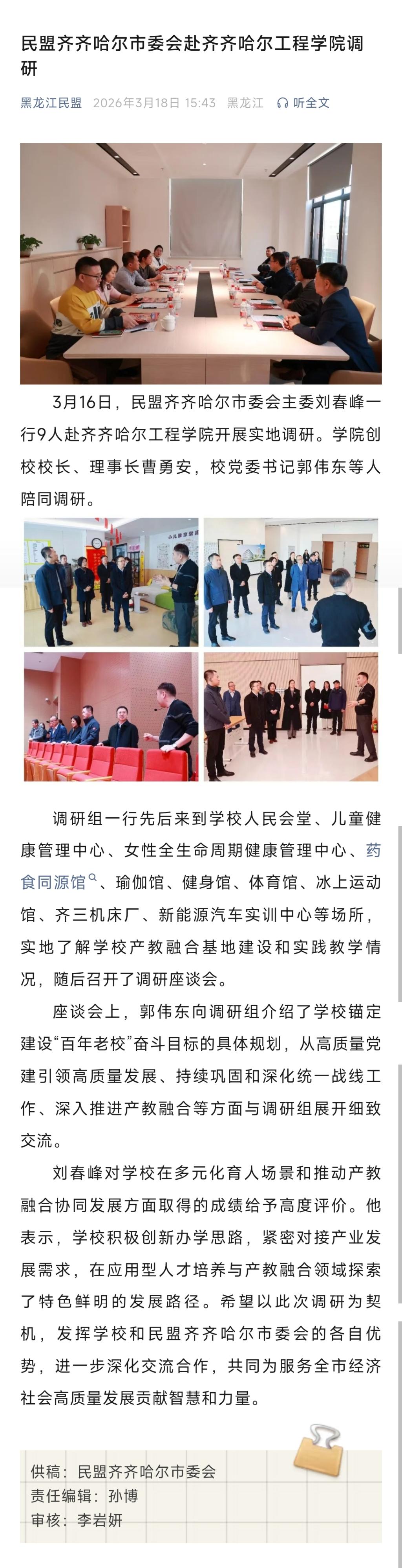 《黑龙江民盟》民盟齐齐哈尔市委会赴乐投app官方在线入口调研