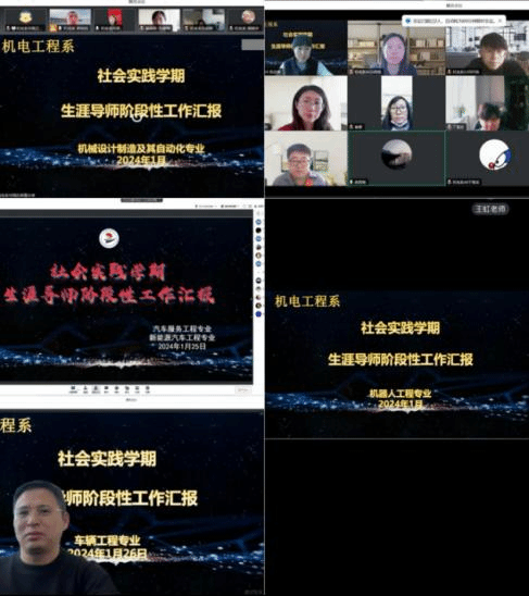 1月22日-1月26日期间,机电工程系分别组织本系6个专业召开社会实践学期阶段汇报会,系党总支副书记郭明敬、全体专业长、辅导员及生涯导师参加。会议由各辅导员主持,均采取线上汇报方式进行。