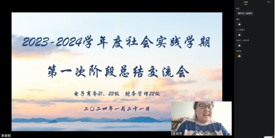 电子商务专业教师刘玉洁强调,在社会实践学期中要养成周周总结复盘的习惯,在实践中不断成长;互联网金融专业辅导员刘天缘鼓励同学们在接下来的实践中继续发挥自己的优势,努力提升自己的综合素质和实践能力;财务管理专业辅导员刘娜提醒同学们按时进行小程序打卡,积极参与系里举办的活动;刘丽娜老师希望同学们在爱国主义实践中要了解现在和平的生活来之不易,更加珍惜当下的国泰民安。