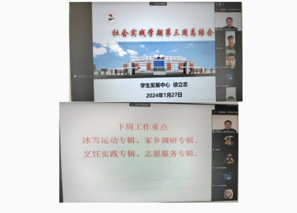 生涯导师李月凤、冯伟老师:1月27日,生涯导师李月凤、冯伟老师通过腾讯会议召开社会实践学期指导会,全体学生积极参会。李月凤老师对上周的任务进行总结,并对存在的问题提出整改意见,强调要注重宣传报道的质量,积极参加各项学校组织的社会实践学期的活动等内容。冯伟老师表示希望同学们在今后生活和工作中,要学会尊重他人,爱护环境,作为新时代大学生,要努力为社会做贡献,成就更优秀的自己。