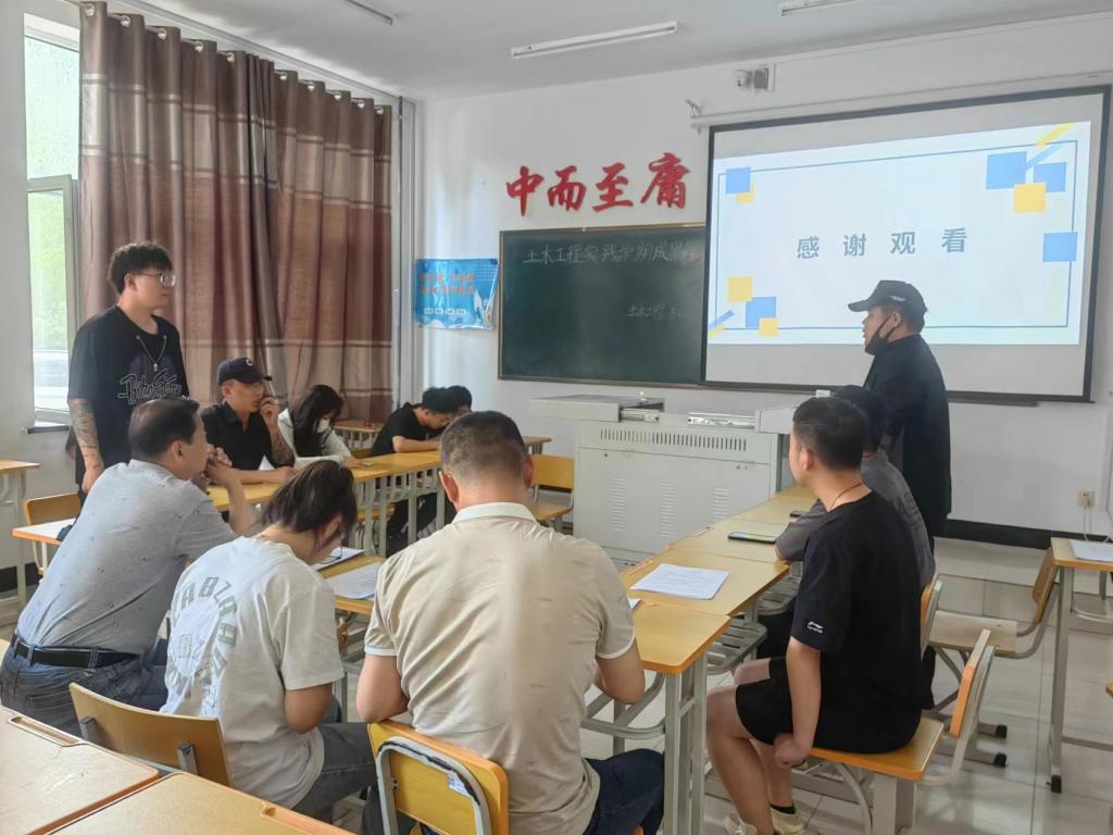 6月5日,土木工程专业专升本2022级在一号教学区1113室进行专业实践第二周成果展示及汇报考核,本次活动以参与校园北区施工项目而展开。由校企双方共同评价,土木工程专业王雪与梁忠强老师,基建办周晶、全福江与黑龙江龙至信工程项目管理有限公司赵双担任本次学生汇报考核评委。