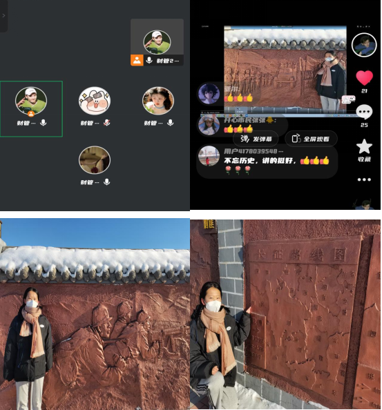 近日,管理工程系财管201班小组在线开展红色足迹活动分享会,小组成员全体参加。王嘉雯通过现场直播的形式,向小组成员展示其参观的红色基地,并向小组成员介绍红色基地的整体结构及参观感悟,让大家更直观地了解了活动基地的各个场景,从而铭记先烈们的英勇事迹。王嘉雯还讲述了红色故事“活捉葛钟山”。这一战成为了游击战的经典之作,极大地鼓舞了红军战胜敌人的信心。小组成员听了纷纷留言,表示敬佩先烈们敢于牺牲的精神,在今后的学习、生活中时刻不忘传承革命薪火,弘扬红色精神。