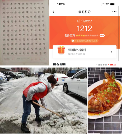 在第四学期的读书任务中,我感悟到了文字的魅力;每日一页的字帖,让我的字体变得更加规范的同时,也使我更加有耐心。各种实践活动,比如“回访母校”“居家锻炼”“劳动实践”等,对我的成长起到了积极的推动作用。在这些实践活动中,对于刚刚步入大一的学生来说不仅是一次任务,更是一次让自己成长的机会。