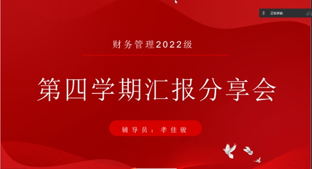 1月15日,管理工程系财务管理专业在线开展“第四学期汇报分享”会。财务管理专业全体学生参加,辅导员孝佳骏主持。