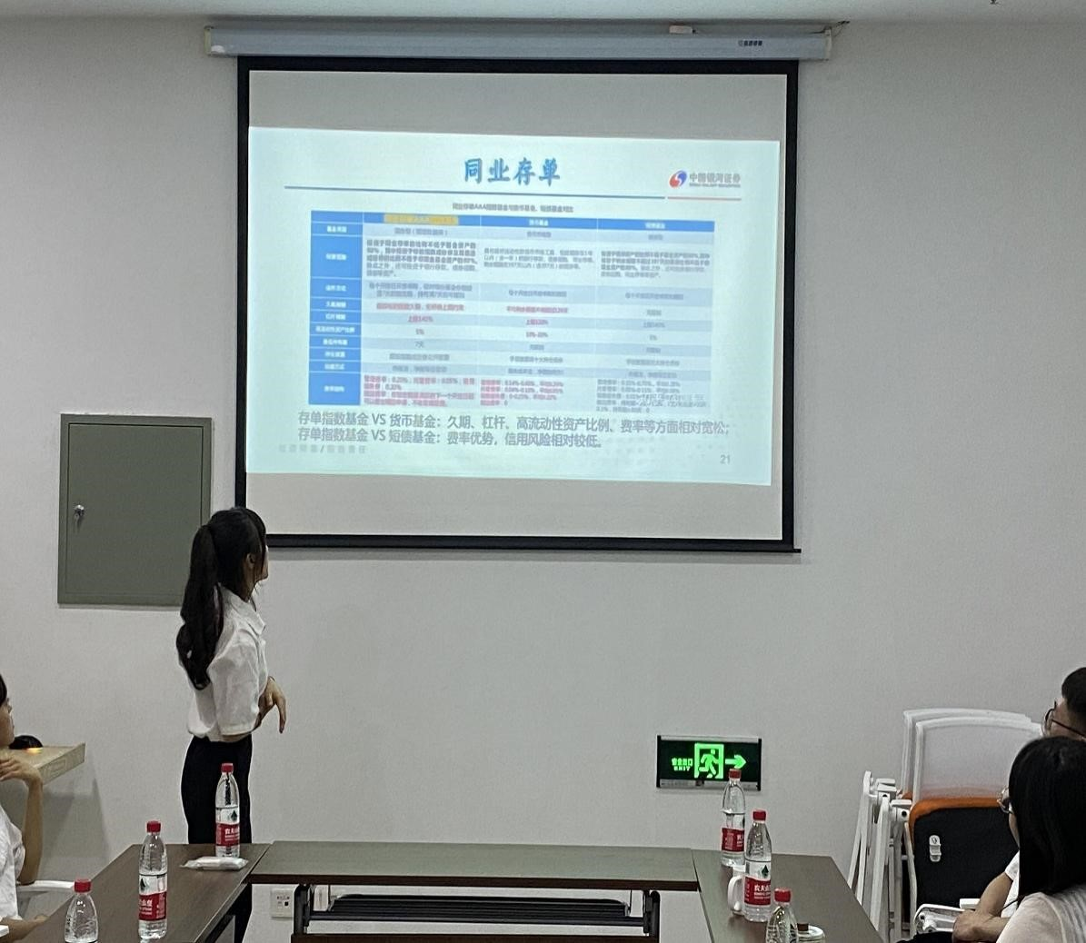 五位同学根据专业实践学期学习的内容,在企业指导教师的指导下,以PPT的形式就客户资产配置与虚拟股票投资两部分内容,进行了精彩的汇报。