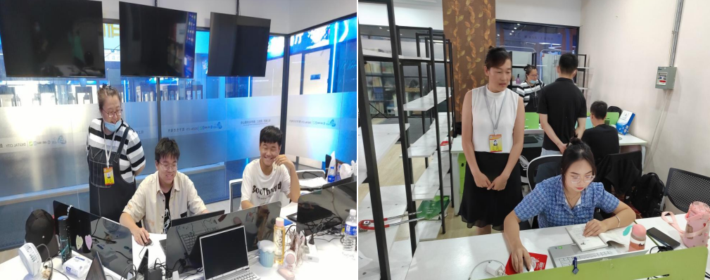 7月21日,管理工程系辅导员王丽伟联合基础部语文教师于丽媛到5G视商产业园进行学生实习情况检查。