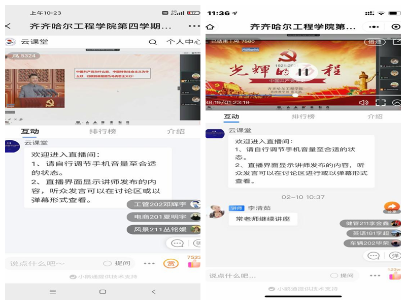 邵奇老师讲座题目为《以史为鉴启新程——学习中国共产党百年发展史》;常立凯老师讲座的题目为《光辉的历程——中国共产党党史》。两位老师通过不同的角度和历史事件,带领学生们将中国共产党百年坚持不懈、努力奋斗的历史清晰地展现在大家面前,用图片和文字带领大家重温了中国共产党不忘初心,为中国人民谋幸福,为中华民族谋复兴并取得巨大成就的光辉历程。