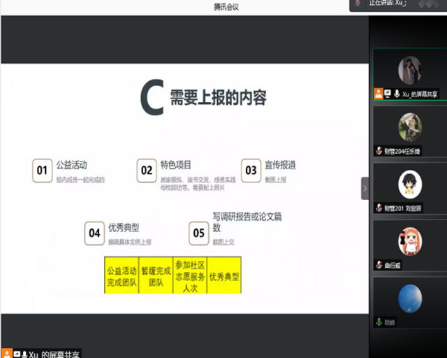 2月7日,财务管理专业2020级第四学期第四阶段线上汇报如期开展。此次汇报由财管201班徐畅主持,财务管理专业2020级辅导员朱晓峰监督,26位组长全员到齐。