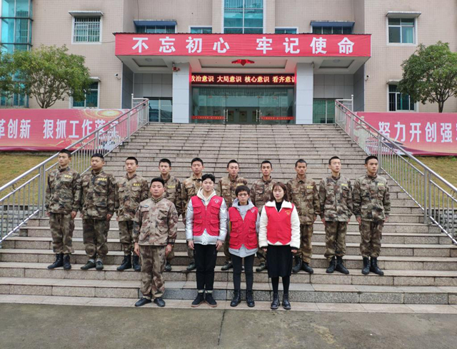 1月14日,GL-GY-052组同学在贵州省黔南布依族苗族自治州福泉市武装部完成第一次公益活动。13日,福泉市出现强降雨,致使树叶落满地。14日清晨,小组同学们拿起笤帚、撮子与武装部官兵一起投入清扫落叶的劳动中,还市民们一个安全、干净、整洁的交通和生活环境。