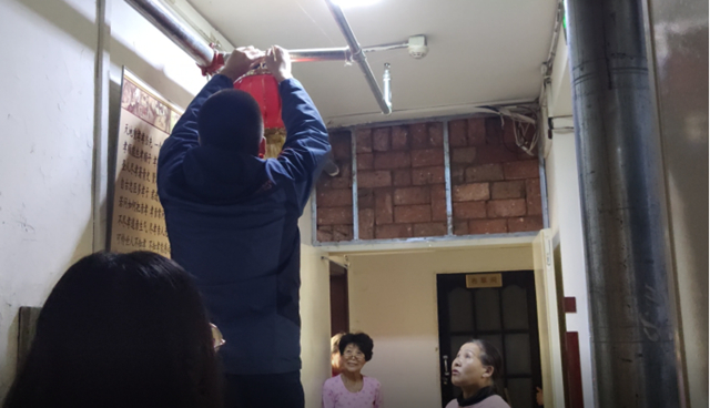在第一周调研了解情况基础上,我们GY098组同学于周五再次来到当地养老院开展公益活动。在养老院里,我们帮助打扫完环境卫生,挂上迎接春节的红灯笼,而后就与老人聊天交流,运用我们所学的护理知识告诉老人饮食和穿着上应该注意些什么,并为部分老人测量了血压、脉搏、体温、呼吸状况等,受到老人们的欢迎。
